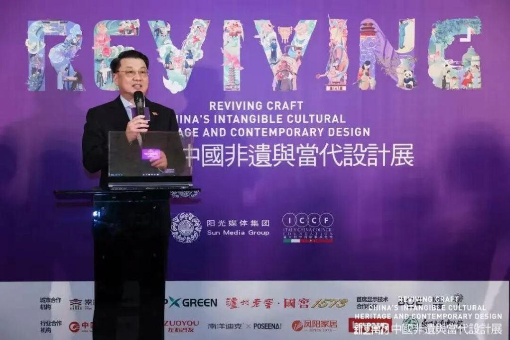 意中理事基金会博塞利主席,在开幕式上发表了重要致辞。他表示,此次展览不仅为观众呈现了中国非物质文化遗产的悠久历史和深厚底蕴,还通过现代技术和当代设计的结合,赋予这些传统文化元素新的生命与时代价值。他指出,展览将在进一步推动中意两国文明互学互鉴、增进两国人民友谊和相互理解方面起到积极作用。