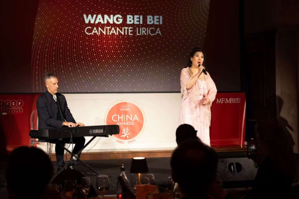 晚宴期间穿插了两场精彩的音乐表演:2023年帕格尼尼奖得主、新晋“金狮奖”得主小提琴家 Simon Zhu 的演奏,以及歌剧演唱家 王蓓蓓(Wang Bei Bei)在作曲家 Andrea Granitzio 伴奏下的演唱。